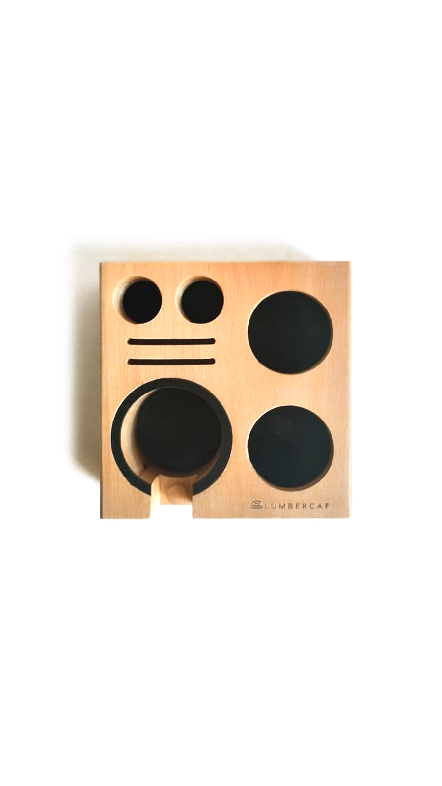 Minimal Footprint, Maximum Workflow. Designed for the home barista who values counter space. The Compact Station provides a stable, non-slip base for tamping while keeping your essential tools hygienic and organized.